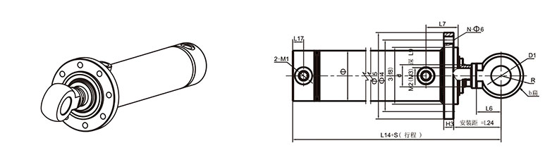 活塞桿端為內(nèi)螺紋桿頭耳環(huán)連接