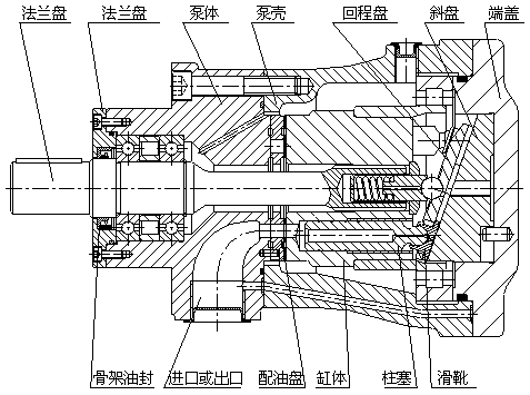 定量機(jī)構(gòu)中斜盤始終固定在定量端蓋上,不能改變柱塞的行程,所以其流量是固定的。